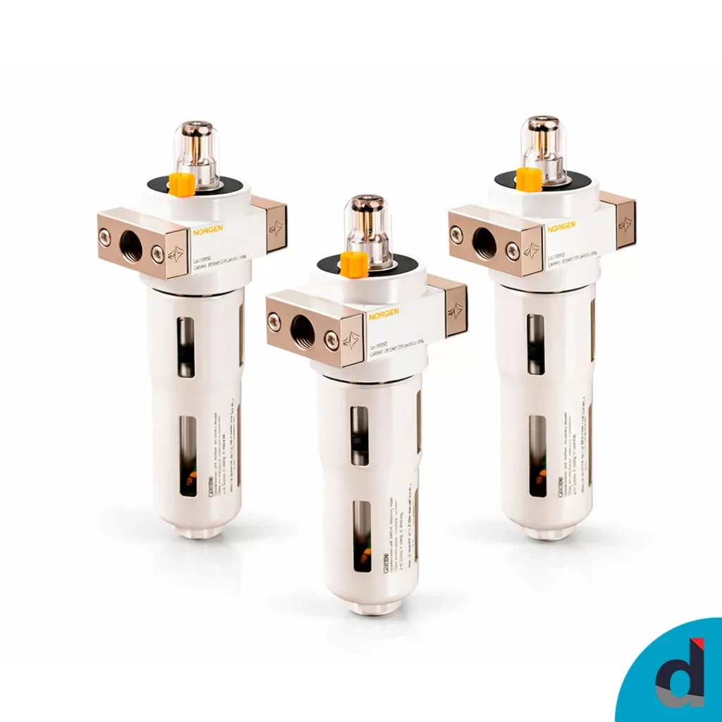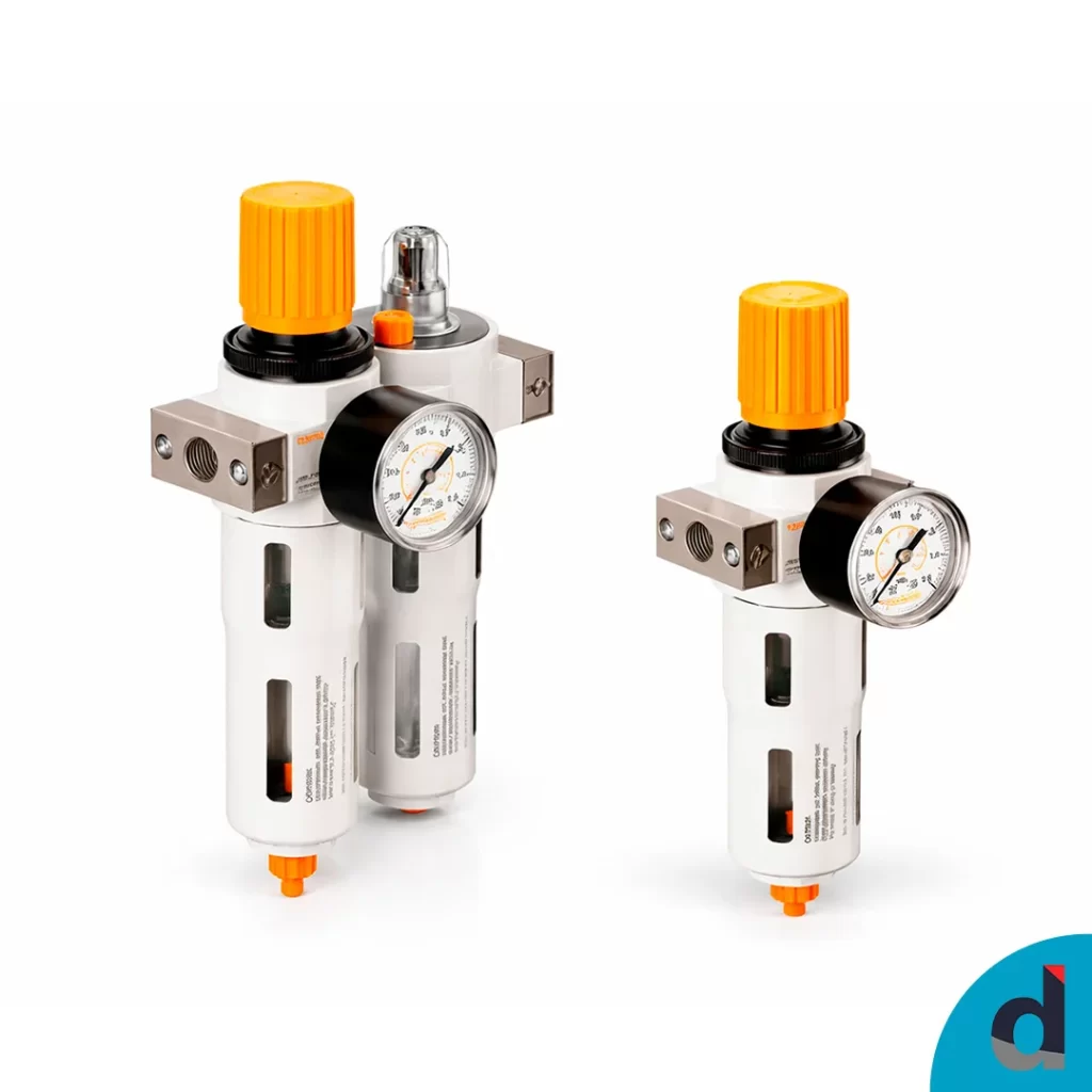 Las unidades para el tratamiento de aire trabajan individualmente o en combinación para minimizar la acumulación de agua, aceite y otros contaminantes que obstruyen las válvulas. Ofrecemos calidad y eficiencia en nuestros productos. Contamos con reguladores de presión, baterías de reguladores, unidades de mantenimiento neumático, filtros y lubricadores neumáticos.